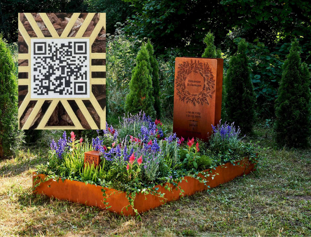 Sie können auch einen QR-Code-Stecker erstellen lassen, den Sie direkt am Grab anbringen. So können Besucher des Grabs direkt auf die Erinnerungsseite geleitet werden und Ihnen Nachrichten und Bilder hinterlassen.